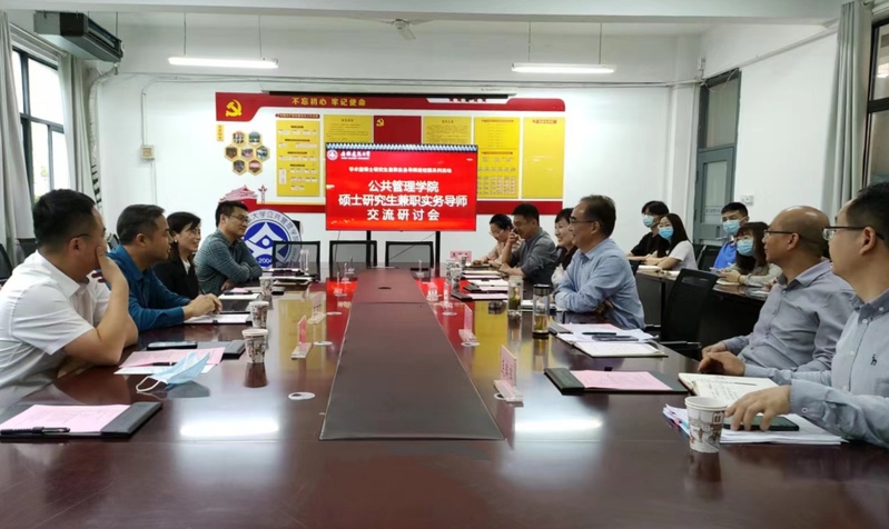本网讯  进一步完善学术型硕士研究生实践培养机制,切实提高研究生实践实务能力,5月19日下午,公管学院在北校区F209举行了学术型硕士研究生兼职实务导师交流研讨活动。会议邀请了受聘的四名兼职实务导师,包括安徽乐庭健康产业集团董事长王茂光、合肥润田规划设计有限公司董事长刘海林、安徽尚原规划咨询有限公司董事长郭岭、上海君悦(合肥)律师事务所主任罗平等。会议由副院长王秉义主持,学院班子成员及2021级公共管理专业研究生与会。