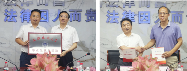 上海君悦(合肥)律师事务所主任罗平详细介绍了校企学科共建、产学研推进情况,期待在前期合作的基础上,持续在学生实训、毕业生就业等方面开展深度合作会后,双方签署了就业实习实践基地协议,共同为就业实习实践基地揭牌