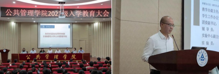 理想指引人生方向,信念决定事业成败。当代中国青年是与新时代同向同行、共同前行的一代。为帮助新生坚定理想信念,补足精神之钙,公共管理学院充分发挥学院领导、系主任、专业教师、辅导员和学长学姐五位一体思想引领作用。9月28日,学院在北校区图书馆报告厅召开2022级入学教育大会,学院领导班子成员、专业系主任、专业导师、新生辅导员和全体新生参加。大会由学院党委副书记马晓艳主持。学院党委书记李道先致辞,热烈欢迎新生入学,倡导新生规划大学总体目标,激发新生学习热情,喜迎党的二十大,对新生寄予了殷切的期望与祝福。院长黄佳豪对学院概况进行介绍,突出公管学院师资好、专业好、学科好等八大优势,号召学生们争做新时代四有好青年。