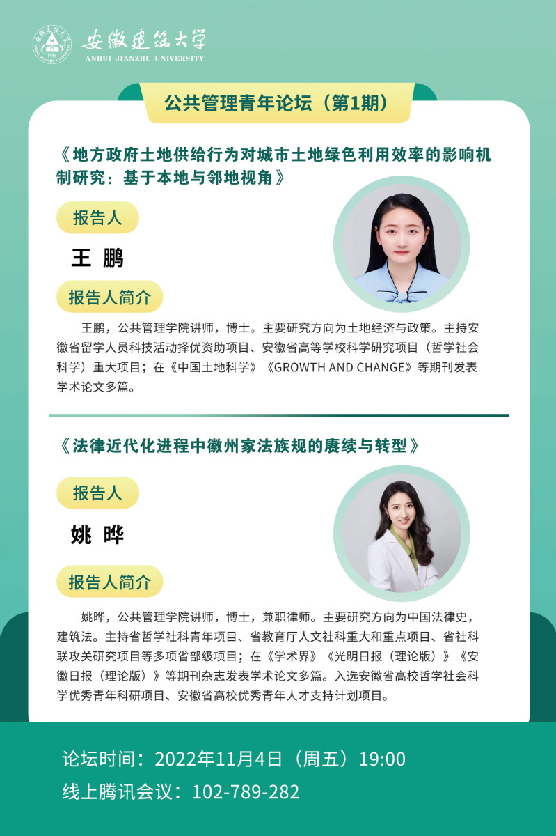 本网讯  为深入贯彻学校推进2023年国家基金申报工作行动方案,提升学院国家基金项目申报质量,激发学院师生学术热情,11月4日,公管学院线上举办公共管理青年论坛(第1期)。论坛邀请了学院青年教师王鹏博士和姚晔博士进行科研成果分享。论坛由副院长王秉义主持,学院教师、研究生及兄弟院校师生共100余人参加。
