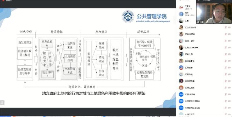 土地资源管理专业王鹏博士以国家自科基金申报书《地方政府土地供给行为对城市土地绿色利益效率的影响机制研究:本地与领地视角》为切入点,介绍了项目选题、现实意义、研究思路和研究方法,本地与邻地地方政府土地供给行为内在逻辑出发,揭示不同环境约束下地方政府土地供给行为的相关性、差异性对城市土地绿色利用效率的影响机制和提升路径。