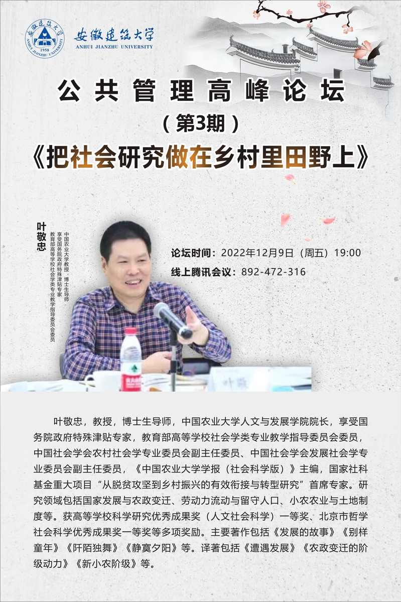 公共管理高峰论坛(第3期):《把社会研究做在乡村里田野上》