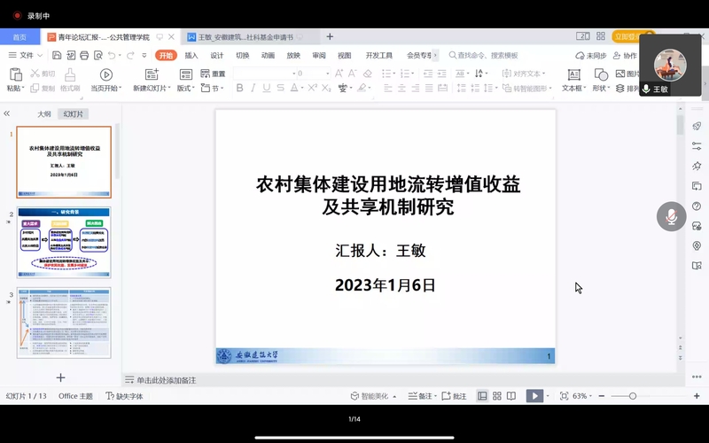 王敏博士介绍了《农村集体建设用地流转增值收益及共享机制研究》的研究情况,围绕研究背景、研究价值、框架思路、研究目标几个方面进行讲解,细致阐述了内在逻辑重构、理论体系建设、案列剖析改进等重点研究内容。