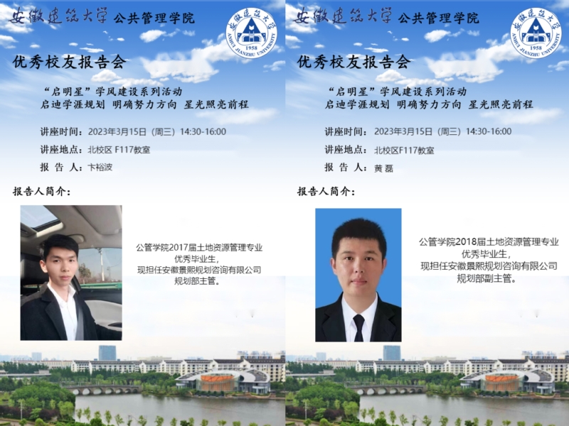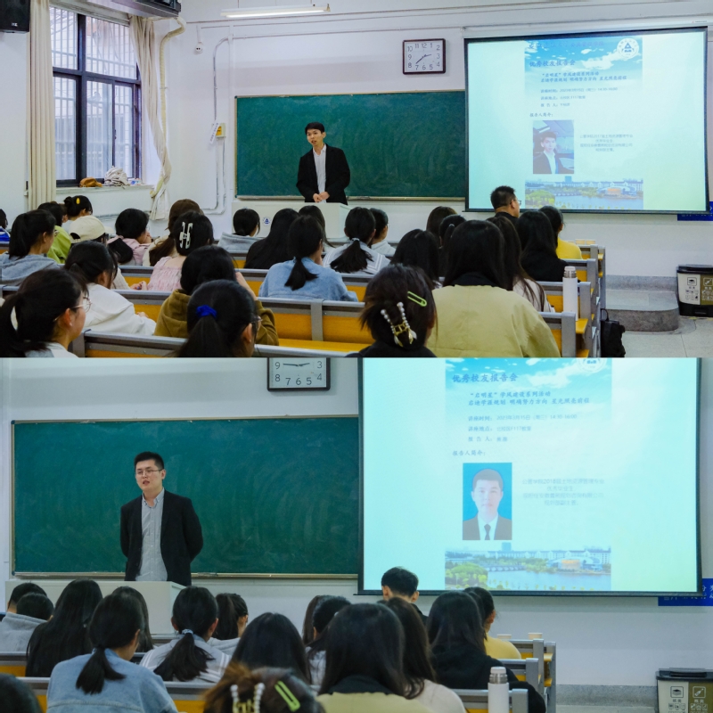 本网讯  为帮助新生增强专业认同,进一步明确奋斗目标合理规划大学生活,315日,公管学院举办启明星”学风建设——优秀校友交流会活动。学院邀请优秀校友卞裕波黄磊担任主讲,学院辅导员代表,2022级土地资源管理专业、城市管理专业全体学生参加