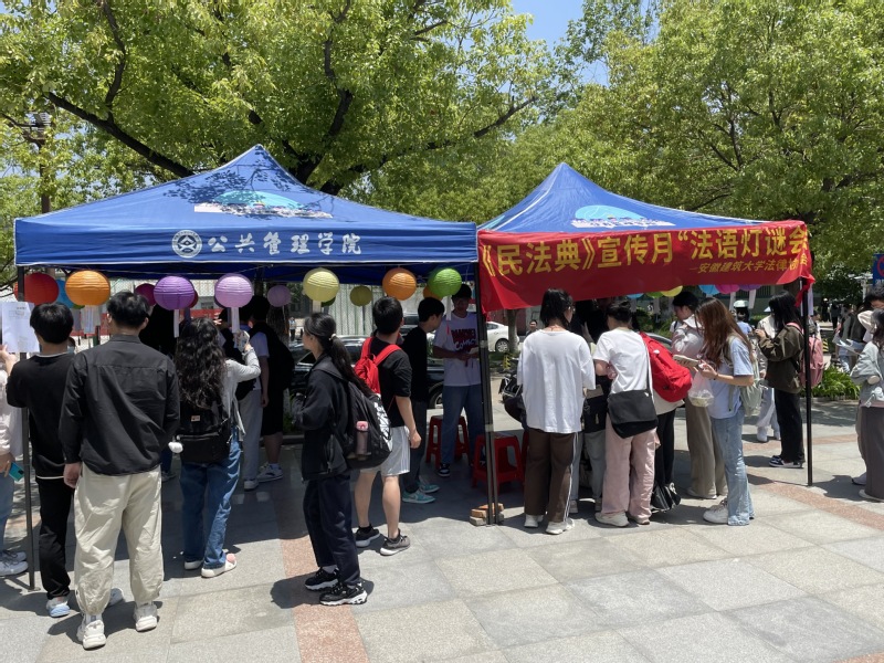 法治灯谜齐参与。寓教于乐,与法同行。公管学院法律协会开展了民法典猜灯谜活动,活动现场设置法治灯谜灯笼、法治咨询台和兑奖处,以猜灯谜这种雅俗共赏的文化活动形式为依托,让同学们在集知识性和趣味性于一体的猜谜活动中增加对《民法典》知识的了解和掌握,感受到法治文化的内涵,提高了大家学法守法用法意识和参与法治文化建设的积极性。