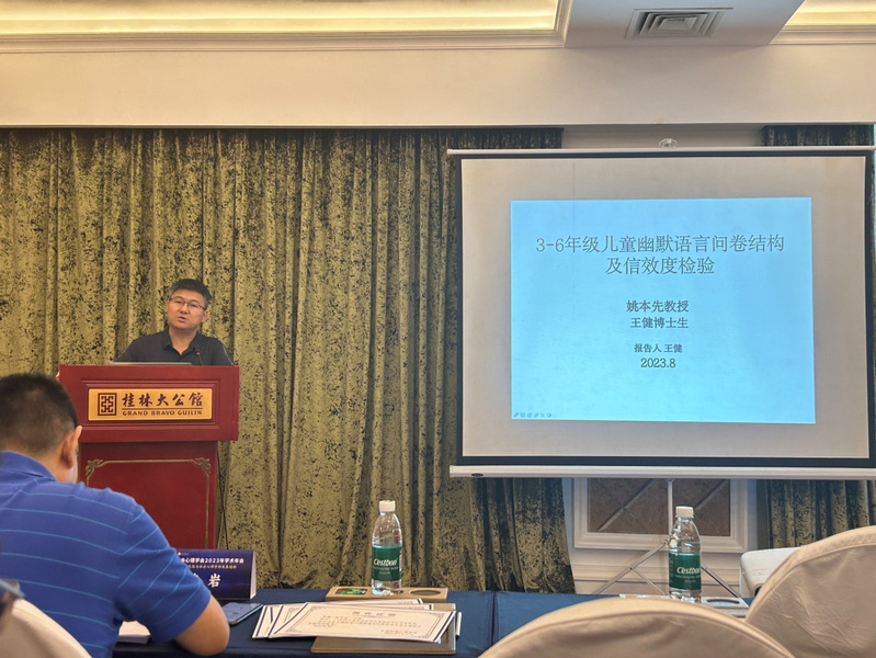 公管学院副教授王健应邀参会并做专题报告:“3-6年级儿童幽默语言问卷结构及信效度检验”。报告从研究背景、研究方法、研究结果等方面展开,指出在儿童青少年中培养幽默语言有助于提高儿童青少年的心理健康水平,提升该群体的生活品质。(文/图:王健;审稿:黄佳豪  王秉义)