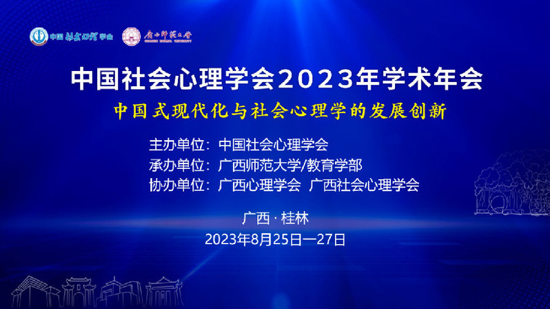 本网讯    825日至27日,由中国社会心理学会主办,广西师范大学教育学部承办,广西心理学会、广西社会心理学会协办的中国社会心理学会2023年学术年会在桂林召开。年会主题为“中国式现代化与社会心理学的发展创新”,来自全国190多所高校、科研院所和相关社会机构1000专家、学者与会。