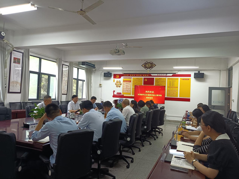 本网讯  9月15日下午,校党委书记孙道胜带队到公管学院调研指导2024年国家基金申报工作。学院院长黄佳豪、党委书记马晓艳及骨干教师20人参加会议。会议由马晓艳主持。