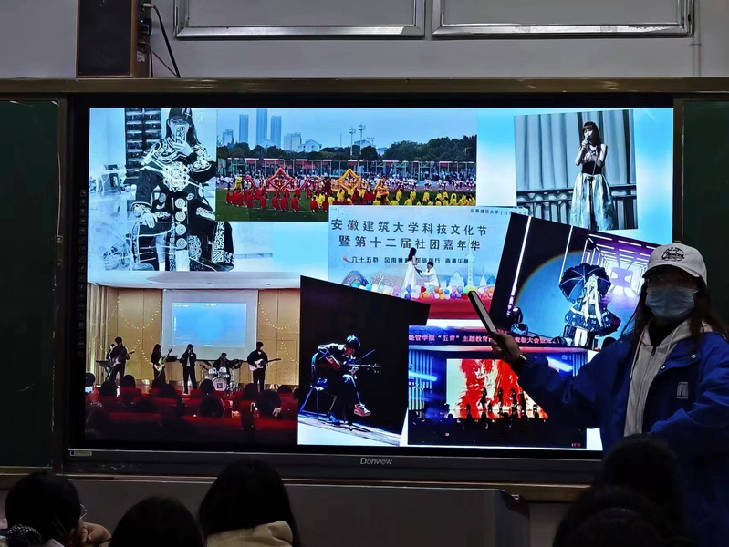 23社保二班邹萌同学分享参与第二课堂活动的现场影像,介绍在建大五彩缤纷的大学学习生活。