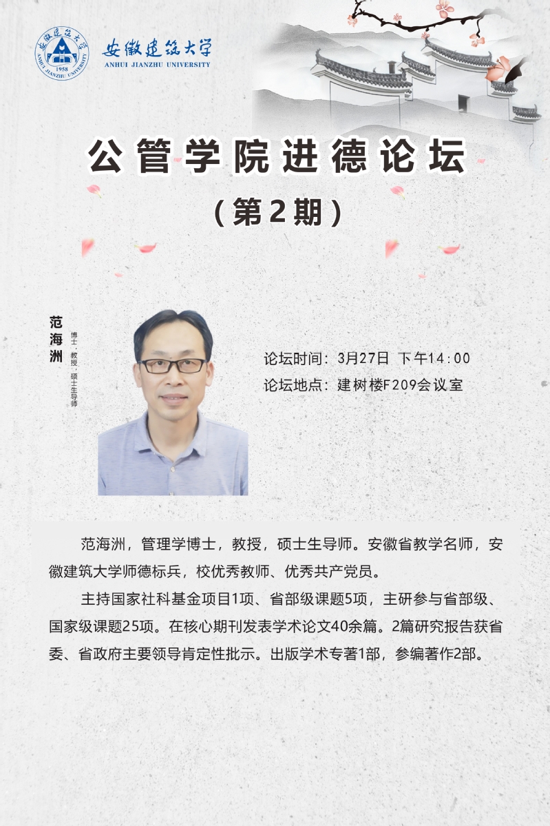 本网讯  为进一步加强师德师风建设,提高教师思想政治素质、职业道德水平,3月27下午,公管学院组织开展师德师风专题讲座《进德论坛》第二期,本次讲座由安徽省教学名师、校师德标兵、学院党委委员范海洲教授主讲,学院党委副书记(主持工作)马晓艳主持,全体教职工参与学习。