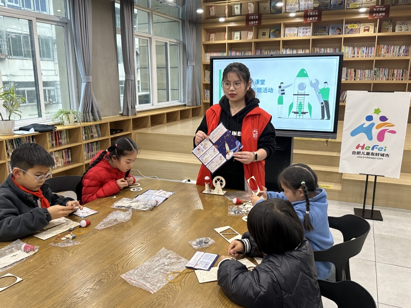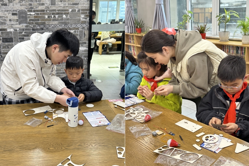 其他学生党员和校青年志愿者协会成员积极指导帮助小朋友们搭建模型。