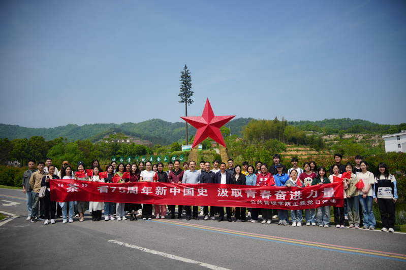 本网讯 党建引领激活力,红绿融合促振兴。为深入学习贯彻习近平新时代中国特色社会主义思想,迎接中华人民共和国成立75周年,讲好红色血脉与绿色发展相融相促的乡村振兴生动案例,近日,公管学院组织师生党员47人前往舒茶镇开展“‘茶’看75周年新中国史,汲取青春奋进力量”主题党日活动,带领师生追寻红色记忆,守护绿色生态,激发奋斗力量。