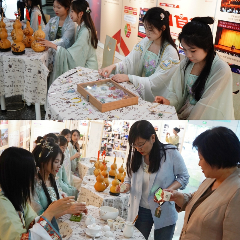 展示社团风采,绽放多元文化。赛场外同步开展传统茶艺表演、葫芦烙画展示、DIY古风发簪、文化产品展列等社团实践活动,在提高学生参与社团活动的积极性、展示才艺与创造力的同时,深刻领会优秀传统文化内涵,用心提炼特色文化符号,用情打造特色文化品牌,不断夯实传统文化根基。