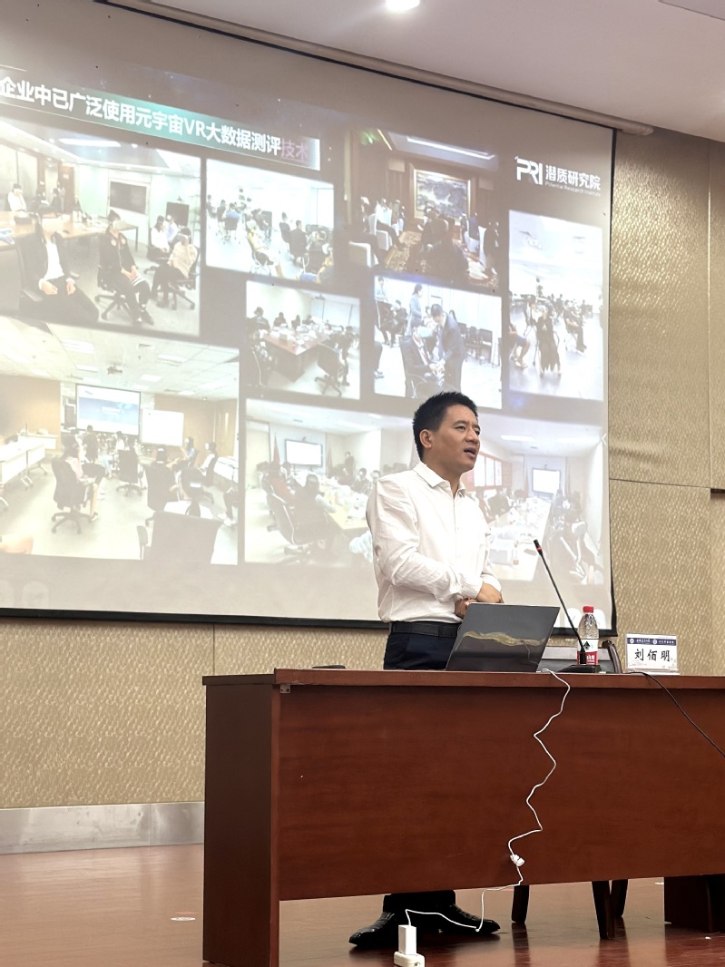 随后,刘佰明向同学们介绍了采用元宇宙VR技术进行大数据人才测评的全新方法,分享了许多相关企业和高校使用该技术的成功案例和应用场景。通过与传统人才测评方式对比,基于元宇宙VR的大数据人才测评能够更真实地还原候选人在工作场景中的表现,提供更准确、全面的人才评估数据,从而提高企业人才选拔的准确性和效率,“测-评-培”人才培养新模式培养的优势导向复合型人才有助于提高组织绩效。