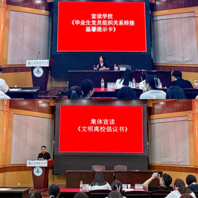 为按学校要求,做好毕业生党组织关系转接和党员档案归档工作,学院为所有毕业生党员发放《毕业生党员组织关系转接温馨提示卡》和《文明离校倡议书》。江侠布置组织关系转接过程中的注意事项,提醒毕业生党员妥善保管组织关系转接介绍信,时刻牢记党员身份,高度重视自己的党组织关系转接,严守党的纪律与规矩做到离校不离组织。毕业后积极参加党组织生活,按时缴纳党费,把“四个意识”落实在岗位上,落实在行动上。经得起风浪考验,自觉站在党和国家大局上想问题、办事情,在讲政治、顾大局、守规矩上做好表率,把忠诚书写在党和人民事业中,把青春播撒在建设祖国的征程上。辅导员林兴勇带领毕业生党员共同学习学校《文明离校倡议书》,倡议毕业生党员以身示范,文明离校,铭刻记忆,感恩离校。