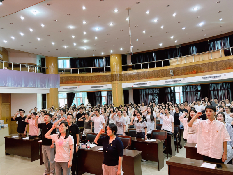时时重温初心,方能更好践行。最后,在马晓艳的带领下,全体师生党员面向鲜红的党旗,高举右拳,重温入党誓词,以铮铮誓言再言入党初心,坚定为党的事业奋斗终生的决心,展现出新时代青年朝气蓬勃的精神面貌和立志报国的拳拳之心。