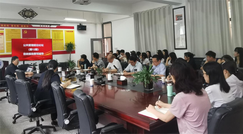 本网讯 6月24日下午,公管学院在建树楼F209会议室举办第12期公共管理前沿论坛,邀请中共安徽省委党校(安徽行政学院)决策咨询部主任戴传利、安徽省社会科学界联合会普教咨询处(科研处)处长吴琼红开展资政报告撰写辅导讲座。论坛由院长黄佳豪主持,学院教师及研究生40余人参加。