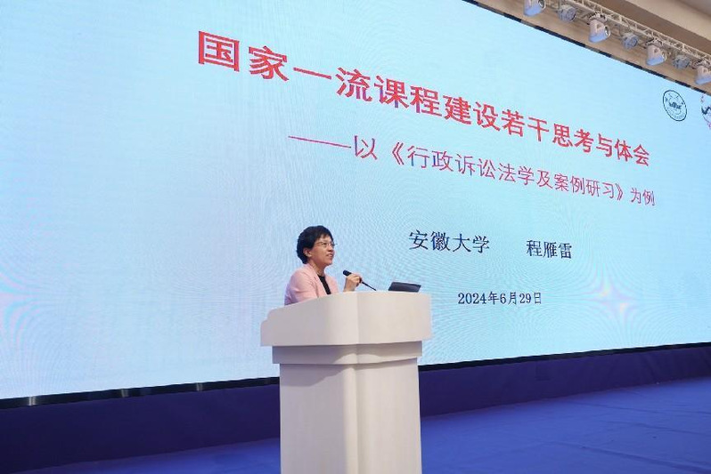 安徽大学原党委常委、副校长、程雁雷教授作《国家一流课程建设若干思考与体会》主题演讲,她以《行政诉讼法学及案例研习》课程为例,指出了课程建设在法学教育研究中的核心地位,并围绕国家一流课程建设提出了一系列指导建议。