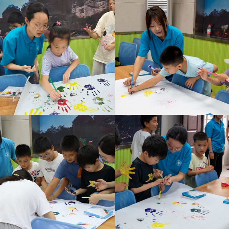 赠人玫瑰,手留余香。小朋友们掌心相连,笑语盈盈,击掌之间,友谊花开。志愿者们以趣味盎然的方式,引导孩子们踏上理解、包容与友爱的旅程。在绘画过程中,那一双双色彩明丽的手掌轮廓印在了洁白的卡纸上,卡纸变得五彩斑斓,创造了美丽,展现了孩子们的蓬勃生机。