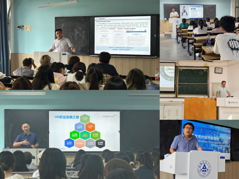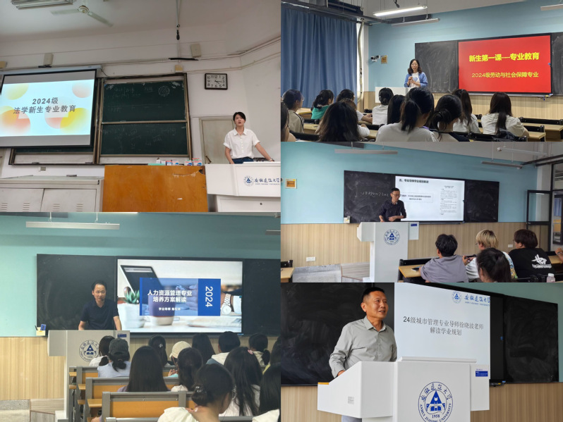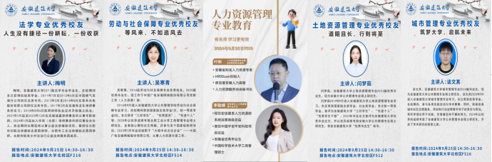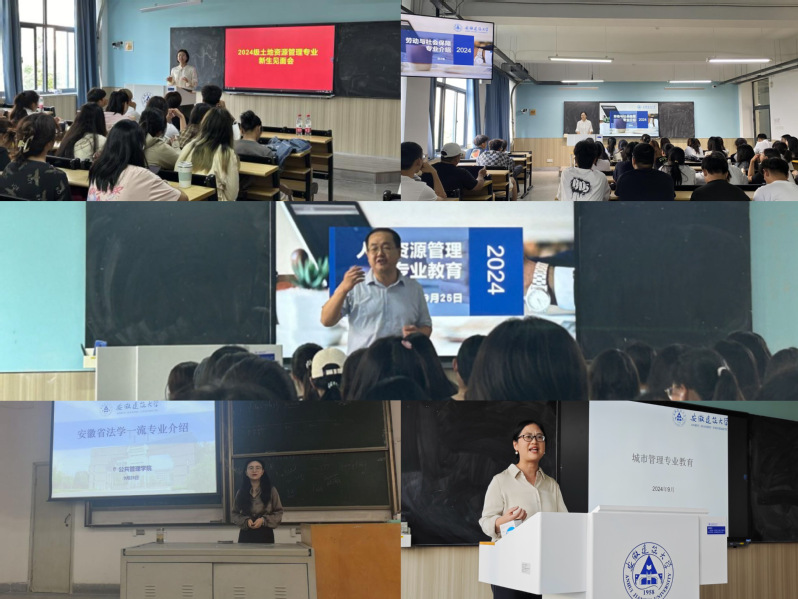活动第二阶段,法学专业邀请北京盈科(合肥)律师事务所股权高级合伙人周虎开展专题交流。周虎联系自身求学、工作经历与生动案例,为24级法学新生同学未来的学业规划提供了宝贵思路和建议。人力资源管理专业邀请安徽省知名人力资源专家HR9Duan创始人、原百度安徽人力高管、人力资源服务协会秘书长叶彬,以人力资源管理专业就业前景和职业规划为主题,系统展示了人力资源管理专业未来的十大职业发展路径。劳动与社会保障专业邀请安徽三卿居养健康科技有限公司创始人CEO黄金龙,结合养老服务产业发展前沿,向同学们系统展示了社保专业与时代发展需求之间的重要关联。土地资源管理专业邀请安徽尚原空间科技有限公司董事长郭岭以《土管不“土”》为主题,介绍了土地资源管理专业在国家经济建设中的重要作用,以及专业的就业前景和发展方向。城市管理专业邀请中国城市发展研究院副总工程师、高级城乡规划师杨柳燕院长从“城市新的定义”“管理方式的改变”“专业新的挑战”和“如何度过大学生活”四个部分进行阐述,强调了城市管理专业的发展价值。