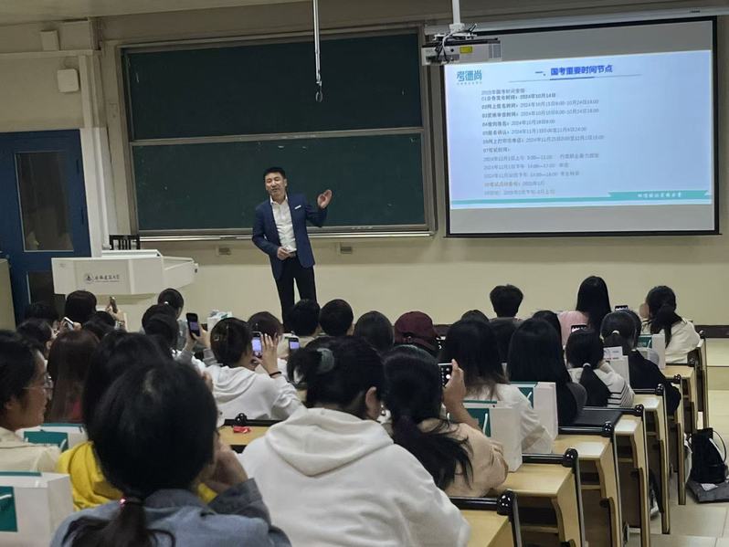 讲座期间,朱建华围绕定向选调生和国考省考的报考政策、考试大纲、题型种类、解题技巧等方面进行了详细介绍,同时结合往届考生的经验为同学们提供了一份精准化、科学化、系统化的备考攻略,让同学们更加清晰地明确考试要求,掌握备考策略,提高考试通过率。