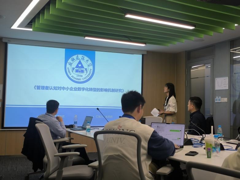 学院硕士研究生张忠丽就“管理者认知对中小企业数字化转型的影响机制研究”这一主题发表了演讲。中国科学院大学经济与管理学院的卢涛教授随后进行了点评,对论文的创新视角给予了肯定,并提出了一些完善建议。