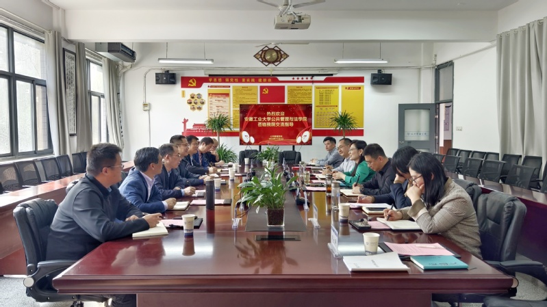 会议伊始,马晓艳对安徽工业大学徐济益院长一行的到来表示热烈欢迎,并简要介绍了与会人员及公共管理学院的历史发展沿革、师资队伍等基本情况。随后,安徽工业大学公共管理与法学院院长徐济益也介绍了随行的代表团成员,并介绍了安徽工业大学公共管理与法学院的发展现状。