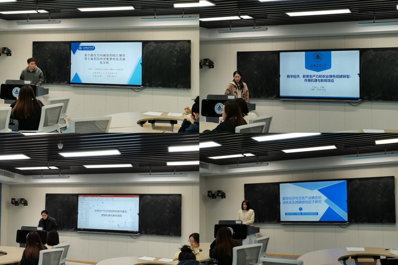 昂宇峰以《基于最佳空间阈值的皖江城市带土地利用冲突集聚状况及演化分析》为题,通过构建土地利用冲突测度模型,对皖江城市带土地利用冲突的集聚状况及演化进行分析,提出了土地利用优化的新思路。李辛曌以《新质生产力引领创新型城市建设:逻辑机理与具体进路》为题,探讨了新质生产力在创新型城市建设中的引领作用,提出了优化路径和策略,对促进城市高质量发展具有重要意义。宁静以《数字经济、新质生产力和农业绿色低碳转型:作用机理与影响效应》为题,从研究现状与理论分析、研究内容与方法展开分享,分析了数字经济对农业绿色低碳转型的推动作用。邵真真以《数字经济与文旅产业耦合协调关系及其障碍性因子研究》为题,探讨了数字经济与文旅产业的耦合互动关系,为文旅产业的数字化转型提供了新视角。