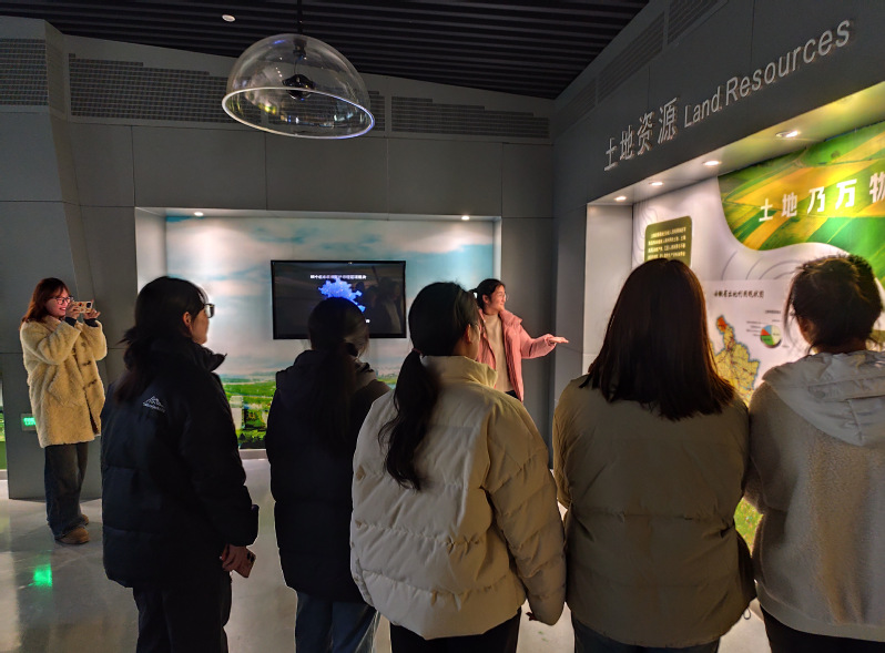 活动当天,首先由馆内工作人员带领参观省地质博物馆,然后同学们以小组形式,围绕“土地资源基本国情国策”“耕地保护重要性”“土地资源合理利用”“地质灾害防治与生态环境保护”“自然资源科技创新成果”五大主题,在馆内开展自然资源科普宣讲。同学们运用生动案例与简洁语言,向大家普及土地资源管理法规政策,强调耕地保护重要性,解读了我国土地资源的现状、面临的危机,分享了土地资源高效利用和集约保护的新思路与新方法,并展示了自然资源科技创新成果,赢得了馆内听众一致好评,同时也增强了自身的社会责任感与公共服务意识。