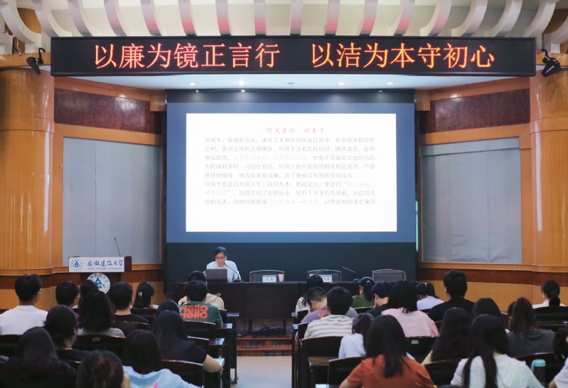 本网讯 为深入推进廉洁文化建设,增强师生廉洁自律意识,营造风清气正的校园氛围,5月14日下午,公管学院在建树楼三楼报告厅举办“以廉为镜正言行以洁为本守初心”为主题的廉洁教育讲座,讲座特邀请合肥市社科联副主席、中共合肥市委讲师团副团长贾猛担任主讲,院长黄佳豪出席并主持讲座,学院全体师生党员聆听此次讲座。