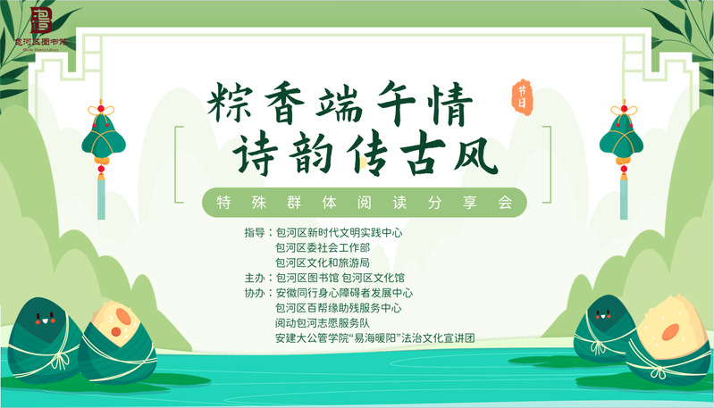 本网讯 为弘扬中华优秀传统文化,增强文化自信,切实践行志愿服务精神,近日,公管学院法学系学生党支部的志愿者们走进包河区图书馆,协办以“粽香端午情,诗韵传古风”为主题的特殊群体阅读分享会,为参与者带来沉浸式传统文化体验。