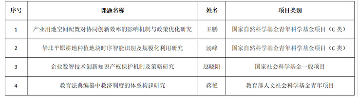 本网讯 日前,国家自然科学基金委、全国哲学社会科学工作办公室、教育部社科司陆续公布了2025年度项目评审结果。我院申报工作呈现持续向好的发展态势,实现立项数与经费总额“双增长”。截至目前,学院已成功获批国家级基金项目4项,包括国家自然科学基金青年项目2项、国家社会科学基金一般项目1项,以及教育部人文社会科学研究青年基金项目1项。