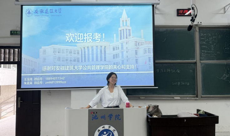 本网讯  9月29日,公共管理学院土管系副主任王玉纯、青年教师汤峰及研究生代表赴池州学院开展土地资源管理学术型硕士研究生招生宣讲活动。