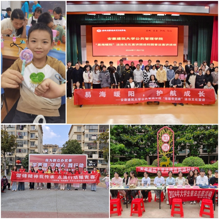 “易海暖阳”公益普法项目自2024年2月成立以来,始终以“党建为引领、专业为支撑、民生为导向”为核心,在学院党委直接指导下,依托校级样板支部法学系学生党支部组建,构建起“专业赋能+志愿实践”的服务模式。项目紧扣《法治中国建设规划(2020—2025年)》要求,将习近平总书记对青年“练就过硬本领、投身强国伟业”的寄语融入实践,形成“政策宣传、社区治理、扶弱助残、普法宣讲”四大服务方向,打造出兼具法治温度与专业深度的志愿服务品牌。