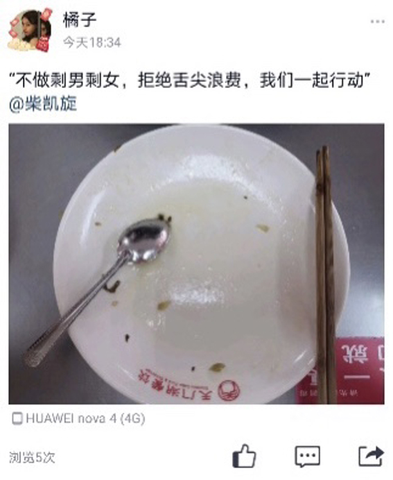 本次活动采取线上线下相结合的方式进行,线下组织学生设计主题海报,并张贴于南、北食堂进行广泛宣传动员,线上收集同学们的光盘打卡照片,同时配文“不做剩男剩女,拒绝舌尖浪费”并@好友进行光盘打卡接力,有效增强了活动的参与度与影响力。活动中,同学们积极参与,纷纷表示今后会从自身做起,厉行勤俭节约,反对铺张浪费。