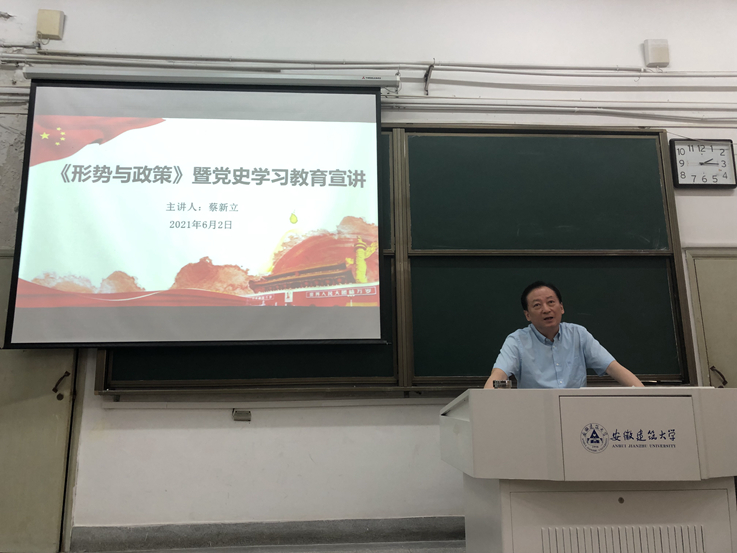 本网讯  6月2日,校党委常委、副校长蔡新立深入经管学院,为学院第48期入党积极分子培训班学员作形势与政策暨党史学习教育专题宣讲报告。180余名培训班学员和部分党员教师代表聆听了报告。
