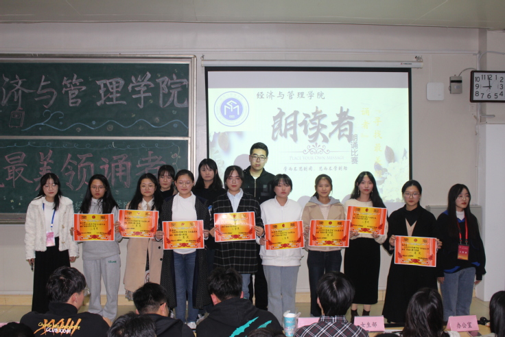 本网讯  11月12日,经管学院在北区C楼605教室举办了“寻找最美领诵者”朗诵比赛。