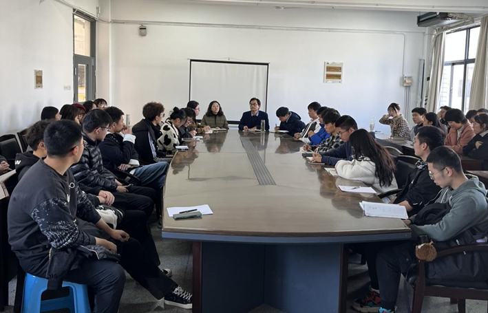 本网讯  11月24日,经管学院在北校区F楼404会议室召开期中教学检查学生座谈会。会议由副院长彭志胜主持,学工办主任、部分辅导员和近60名班委和学生代表参加。