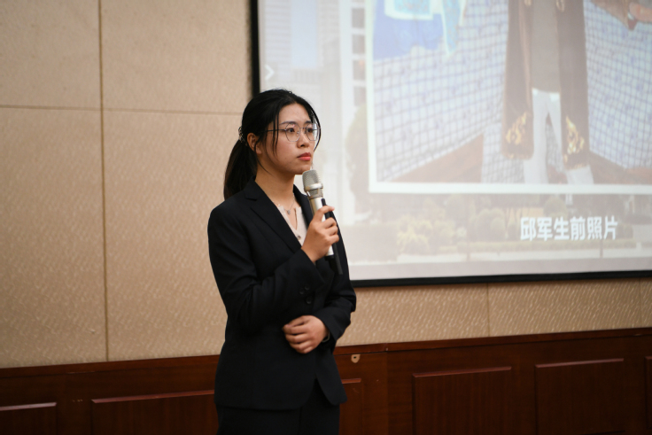 报告会上,报告团成员对邱军校友生前的英雄事迹进行了讲述,他们站在不同的角度全方位地讲述了邱军同志的先进事迹和崇高精神。报告团成员郭剑讲述了邱军校友“四本笔记”的故事,“四本笔记”记录了邱军扶贫期间工作的点点滴滴,有他调研后收集的资料,有他扶贫后的感悟和思考,这些密密麻麻的文字背后都是邱军对南梁革命老区的热爱与坚守。报告团成员邵钦涟是邱军生前的同事,从邱军“特别能吃苦、特别能扛事、特别能团结”三个方面对他毕业后进入东华科技工作的表现进行了全方位的展示,工作上,他尽职尽责、攻坚克难;生活中,他乐于助人、团结友善。无论工作任务多么繁重,他都会以饱满的热情投入到工作和生活当中。报告团成员程汉卿讲述了原中国化学派驻华池县庄科村驻村第一书记王鹏与邱军的故事。回忆了与邱军并肩作战的两年时光里,邱军给予他的帮助与指导,感受到了邱军作为“好大哥”的责任与担当,也描述了乡村振兴后继有人。报告团成员任可讲述了华池县融媒体中心记者赫波所记录的邱军,几个邱军与帮扶对象之间的故事,背后都透露着邱军对华池人民的热爱,他把华池当成自己的家,倾尽了所有心血。报告团成员卫尤澜动人地讲述邱军与家人的温暖故事,感人至深。报告团成员陈洁是青年人的代表,讲述了对邱军同志崇高精神的领悟和传承。
