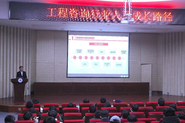 奚峻围绕“工程咨询行业的发展趋势”“工程管理专业与工程咨询行业发展的关联度”以及“新形势下大学毕业如何快速融入职场”三大主题,结合自己工作十几年以来的经验,与同学们分享了他关于行业发展的相关判断。同时,根据工程管理、工程咨询行业对知识、素质和能力方面的要求提出许多关于学习和就业方面的中肯建议。