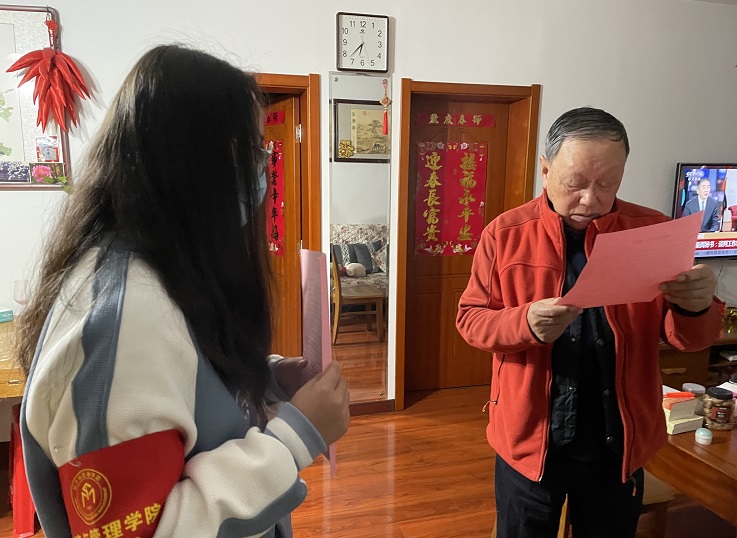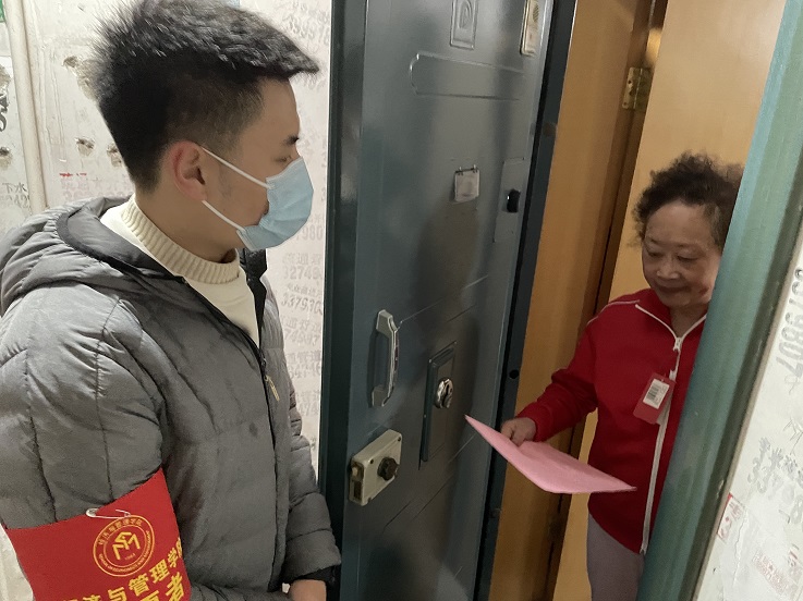 “您好,我是经管学院学生志愿者,现在向您普及一下疫情防控知识。”各个小分队走家入户,将“致校内住户一封信”交到每一位居民手中,并向他们宣传疫情防控注意事项,呼吁住户们积极关注全国疫情防控形势,在日常生活中养成戴口罩、勤洗手、常通风等好习惯,积极接种疫苗和加强针,坚持“非必要不离校”原则,用实际行动为我校疫情防控贡献一份力量。