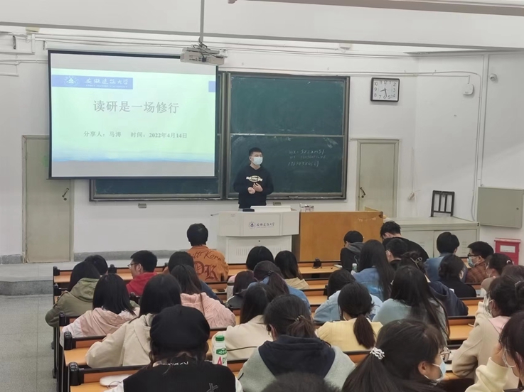 建筑与土木工程专业三年级研究生马涛以“读研是一场修行”为题,锚定硕士研究生应该具备的基本素养,提醒学弟学妹们要不断增强自我学习意识,本着对自己负责的态度,无论是读书、写作还是做项目,都要积极主动,充分利用三年时间,体验各种学习和科研机会。另外要学会与自己相处,当理想与现实不一致时,要学会调整自己,要多与导师沟通,疏导心情,并积极地“向前看”。