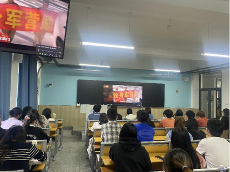 《火热军营精彩人生》宣传片以小见大,生动展现了我国国防事业发展的伟大成就和新时代军人的良好精神风貌。辅导员从实际出发宣传并解读了大学生入伍享有的学费补偿代偿、退役复学、就业服务等各项优抚政策,鼓励大家到军营去深造,到祖国最需要的地方建功立业。