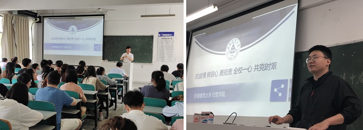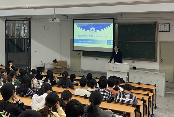 4月26日至4月29日,经管学院36个专业班级(含研究生)共召开主题班会25场,学院领导班子成员深入课堂参加各班主题班会。各年级专业辅导员结合不同专业年级的实际情况,以当前世界疫情形势、我国抗疫主要行动、学校各项管理政策和建大学子应该怎么做为主线开展主题教育,帮助广大学生树立信心、坚定信念,理解和配合学校疫情防控各项举措,筑牢校园安全稳定防线。学院领导班子成员深入到班会现场,倾听同学们现实困难与思想困惑,对当下能够解决的问题给予正面回应,对暂时解决不了的问题承诺将与相关职能部门进行协调,全力做好同学们的服务与管理工作。