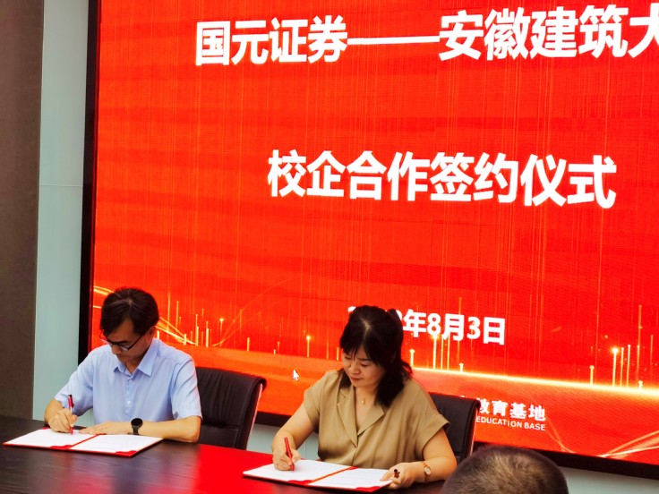 本网讯 8月3日,为提升人才培养质量,深化产教融合、校企合作,经管学院党委书记陈国中率副院长彭志胜、章蓓蓓一行赴国元证券签订协同育人校企合作协议。签约仪式在国元证券投教基地举行,国元证券党委委员、副总裁范圣兵,分支机构服务部总经理许静青,合肥分公司总经理张俊等公司领导参加签约仪式。