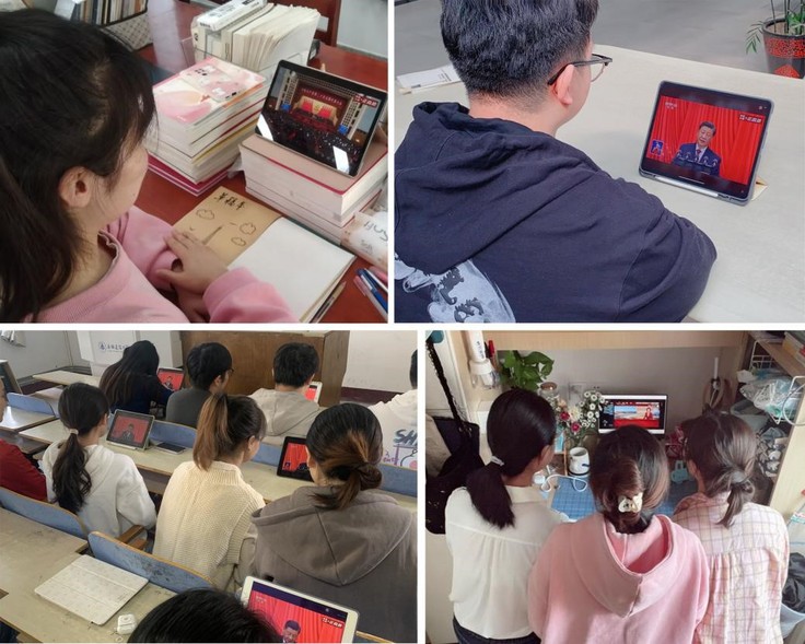 本网讯 10月16日上午10时,中国共产党第二十次全国代表大会在人民大会堂开幕,中共中央总书记、中华人民共和国主席、中央军委主席习近平代表第十九届中央委员会向党的二十大作报告。经管学院积极组织师生党员代表、党外人士代表、入党积极分子代表在F楼304教室集中收看大会实况,各党支部、班级自行组织同学们观看大会直播,认真聆听、领悟习近平总书记在大会上所作的报告。报告在广大师生中引发热烈反响。