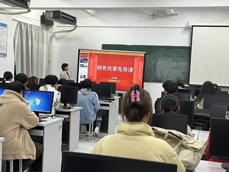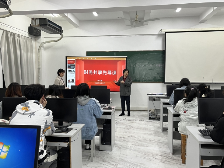 本网讯 为帮助学生更好地掌握财务共享及会计行业未来发展趋势,3月21日,经管学院在学院财会综合实验室组织开展校企联合授课活动。活动邀请新道科技集团财务类产品专家级讲师、用友集团杰出讲师许文皓进入课堂讲授“财务共享先导课”。联合授课活动由学院实验中心主任朱素媛主持,财会系副主任徐奕红和骨干教师任国瑞具体组织,会计学、财务管理专业学生参加。