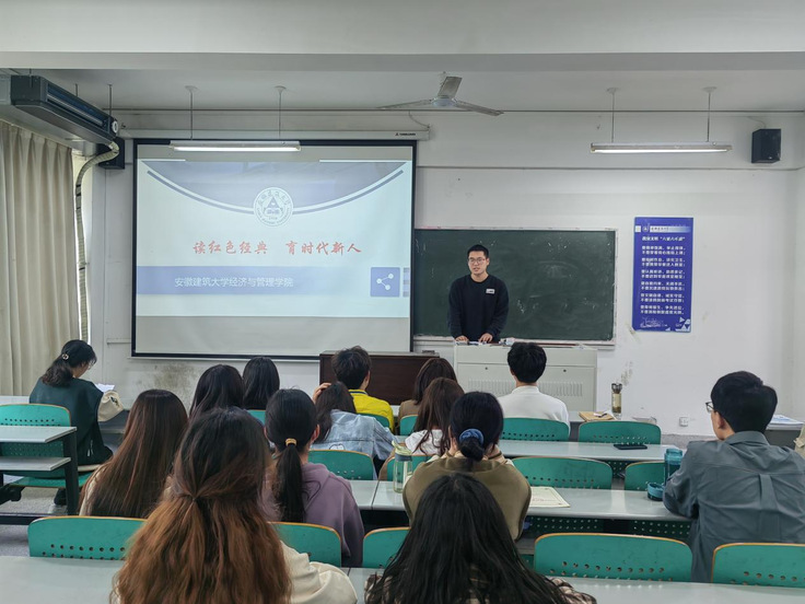本网讯 忆百年峥嵘,颂盛世华章。为弘扬革命先烈丰功伟绩,继承革命先辈的优良传统,培养学生爱党、爱国、爱社会主义的真挚感情,4月26日,经管学院举办“读红色经典,育时代新人”品读分享会,共有50余名学生参加了活动。