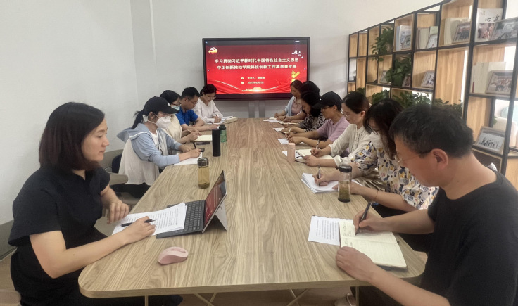 学院院长彭志胜以《踔厉奋发勇毅前行团结奋斗》为题,围绕“开辟马克思主义中国化时代化新境界”、“新时代新征程中国共产党的使命任务”和“实施科教兴国战略,强化现代化建设人才支撑”三个部分进行阐述。他结合学院的实际、学校的目标任务和科研动态阐发了对党的二十大精神的理解,号召大家对党的二十大精神学思践悟,并积极投身到学校的科研和院系建设中。