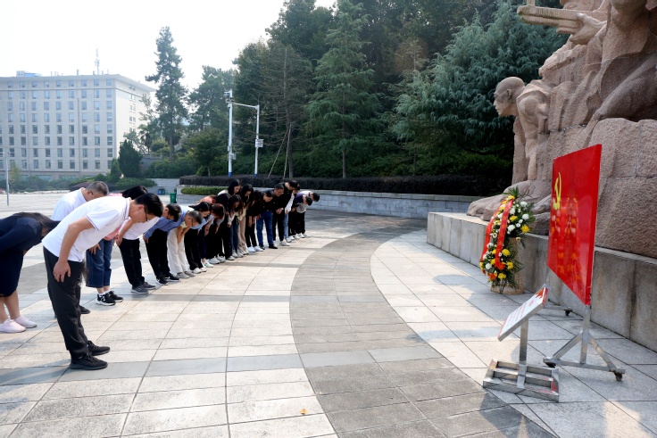 随后大家来到红源广场。瞻仰了历史丰碑柱、舒传贤烈士雕塑、大别山革命英雄群雕、大别山革命史浮雕墙。在英雄群雕前,向革命烈士敬献花篮,鞠躬默哀,表达对革命先烈崇高的敬意。重温入党誓词,再次接受红色洗礼。